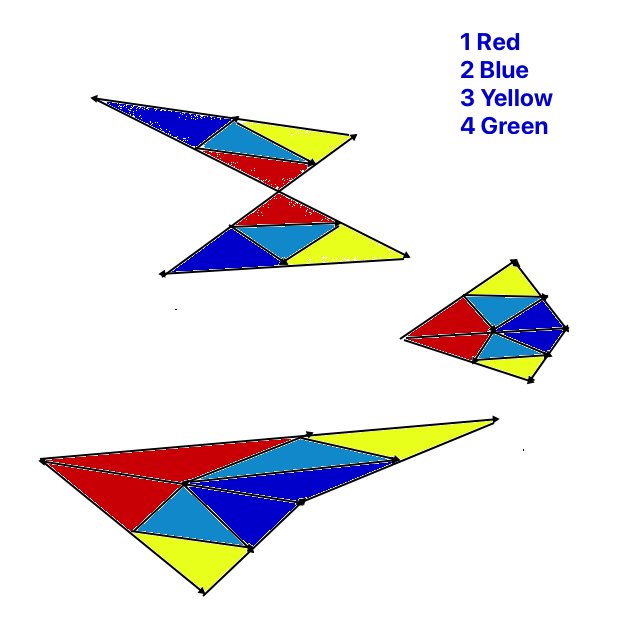 10. Well they are theoretically adding up to four equal shapes [some needs flipping and realigning] but it may appear not so as the drawings have not been done to scale ! But it gives the picture !! Red = Blue = Yellow = Green