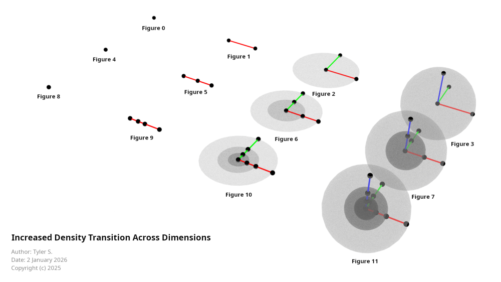 More Density = More Mass Fill in I think the formula; l / 2^xP in geometry terms specify how increased density can be created thus allowing more mass to fill in then maybe a bit more gravity? Questioning and Self-Doubt But I'm a bit confused now because the formula includes division which divides length into half by 2 number of times until 0 is reached. It divides whereas increased density should be multiplicated? I'm not sure. Limitation But there is a catch; once the formula if it such one at that; l / 2^xP - specifically P (increased density) make length reach 0, that is when a limitation is reached for increased density. Attach Visual version titled, "Increased Density Transition Across Dimensions"