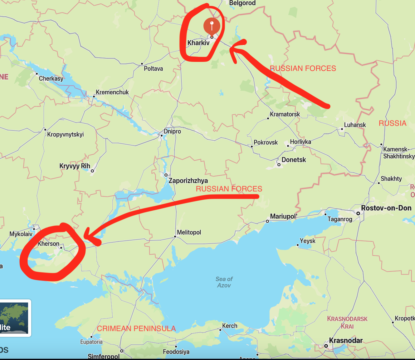 Andriy Zagorodnyuk, Ukraine’s former defence minister: (24/02/22) "There are thrusts taking place. They are quite close to the city of Kherson now. The situation is really critical there. They are also trying to surround Kharkiv. It seems like Kharkiv at the moment is the main target. They also try to get to Kyiv using one battlefield group. The group went from Belarus and it was stopped. There’s quite a bad road [to Kyiv]. It was strange that they sent such a small group on such a road. Clearly it was miscalculation on their side for the moment. There were some Russian losses and on our side. Ukrainian armed forces are fighting quite seriously. There is no panic. There are attempts to resist and in many directions it’s working out." ------- A miscalculation, or a diversion to keep Ukrainian forces from concentrating in the East? Surely if Russia planned to take Kiev, they would do so. There would be no "miscalculation".