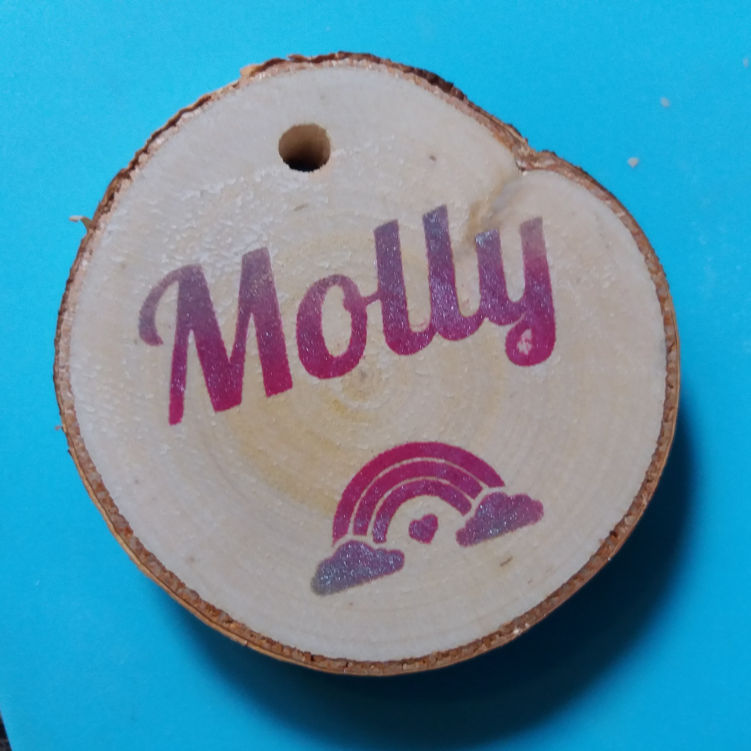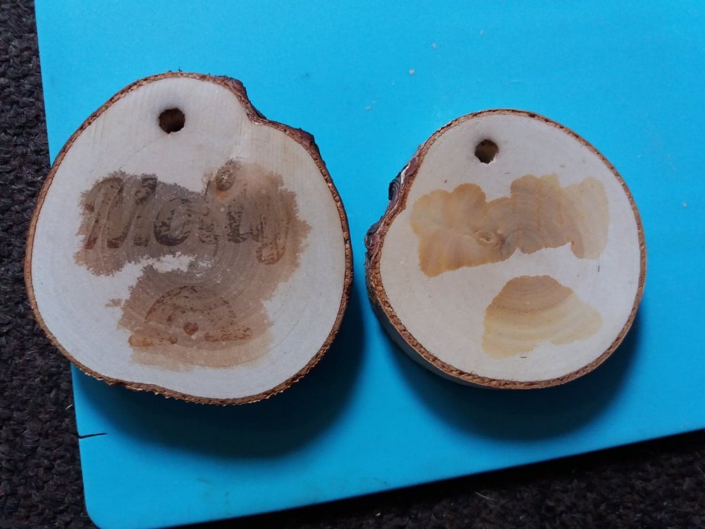 Ah yes that's the original video i watched to gave me the idea to do it. But seems no matter what I do it just wants to soak into the birch wood, even if I use a small amount on a tiny paintbrush. I think I may have to give up with it, I've tried 3 different ways on the wood slices and none worked. On the remaining blank side of one, I just decided to try using an ink pad and it came out really well. I need them to be neat and consistent with a stencil as Its for my etsy shop. This is with pink and silver ink: