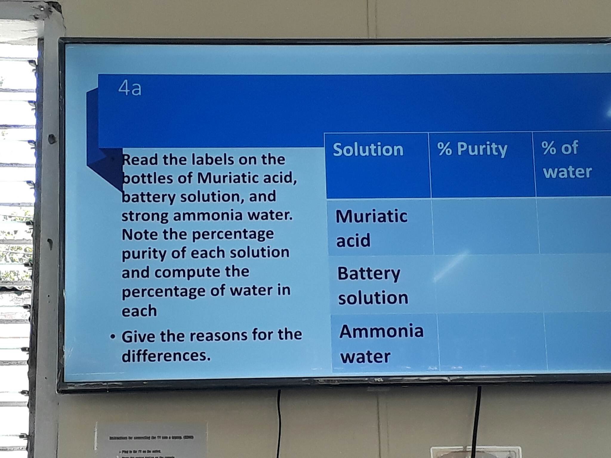 How do you calculate the % water ? Let's say the % purity of Muriatic Acid is 18% how do you calculate the % Water? In terms of the reason for difference what should I look at? Like the dissolution? IDK how I would compare these solutions as they have different uses and properties.