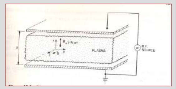 Hello, I have a question regarding the manufacturing process of electronic components in the case of the silicon deposition and corrosion process. My biggest doubt is the behavior of the plasma interacting in the reactor, I don't know if it's correct I would like someone to help me. What I understood from the subject: If you look at the image, it shows a capacitor (in the simplified case, a PECVD or RIE plasma reactor) where the particles descend from the plate and then it will collide with the particles on the bottom plate, in this case it is in the middle where the plasma wants to pass. In practice we have three directions (vectors) x, y and z, the magnetic effect occurs in the plasma where the particles have two directions or two directions in a spiral effect, so the shock is greater in the sample. In its behavior taking advantage where the field can move in the sample without having to move it. Is correct?