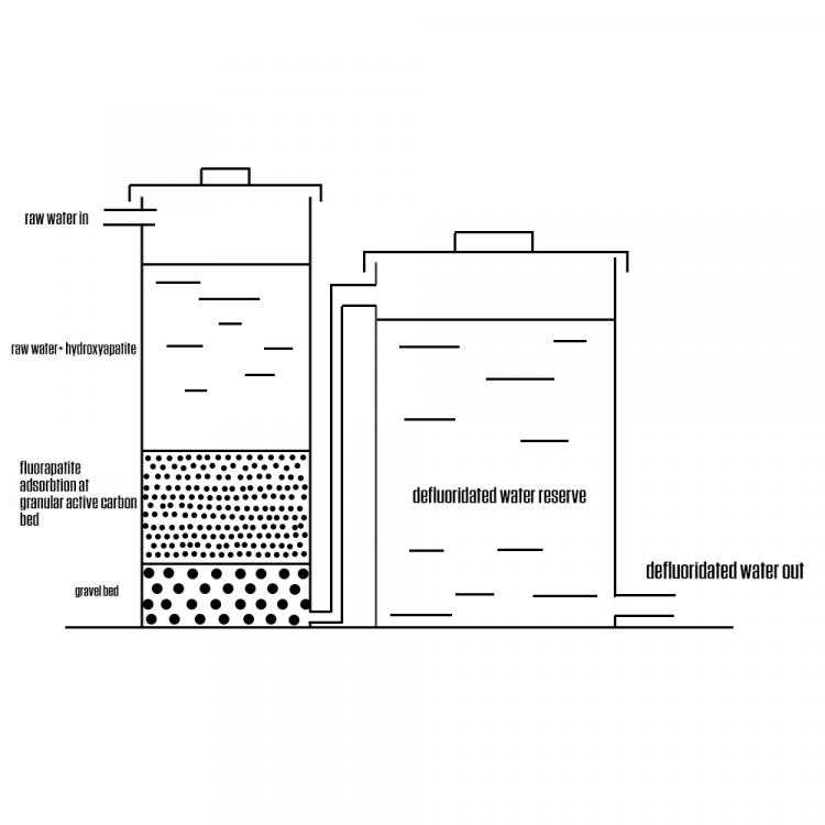 1. yes the idea is that the hydroxyapatite reacts with fluoride ion in water and forms fluorapatite with poor solubility in water which gets adsorbed at the activated carbon bed and allows the water to go past, thus free from fluoride. As for the eggshells, they would be treated, grinded, and sintered. The CaO derived from eggshells converted to Ca(OH)2 will be mixed with orthophosphoric acid H3PO4 to make hydroxyapatite nanoparticles. How does this process sound to you?