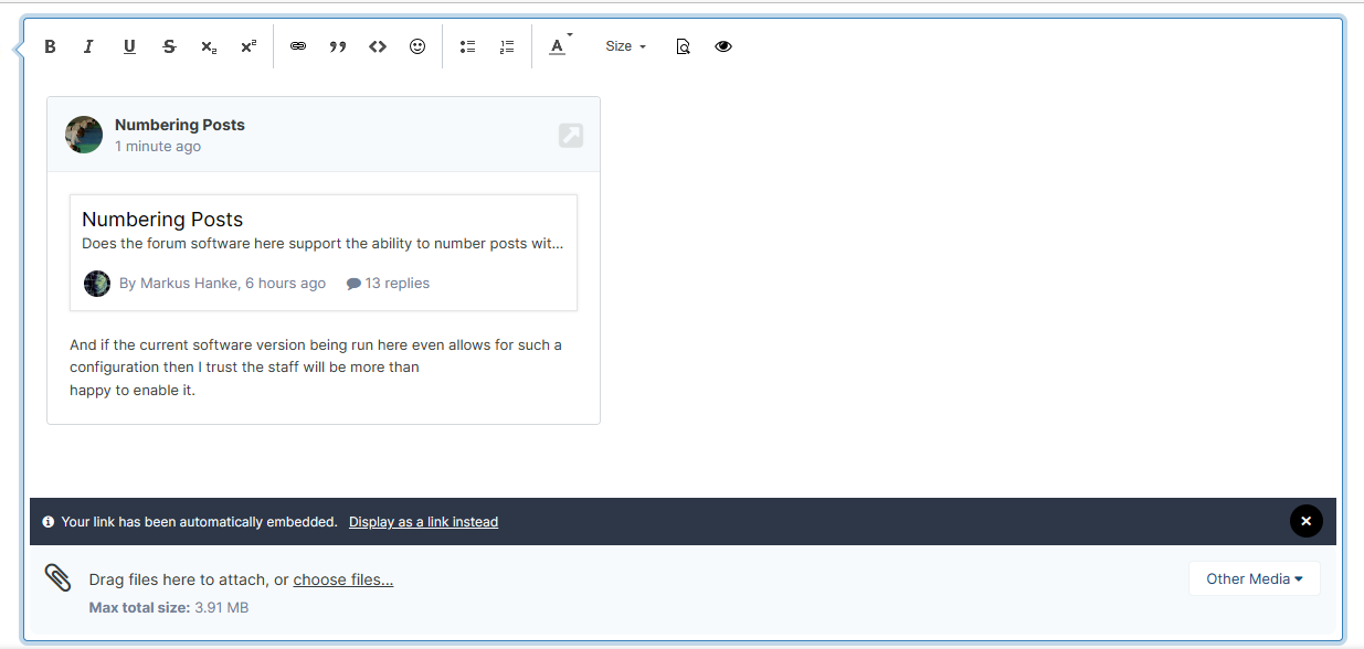 I agree, the boxes make it a mess. But one more click eliminates them: when they appear there is an option underneath, "Display as a link instead", underlined. Then, instead of this: it appears like this: Maybe the staff could change the function, so the latter is a default rather than the former?