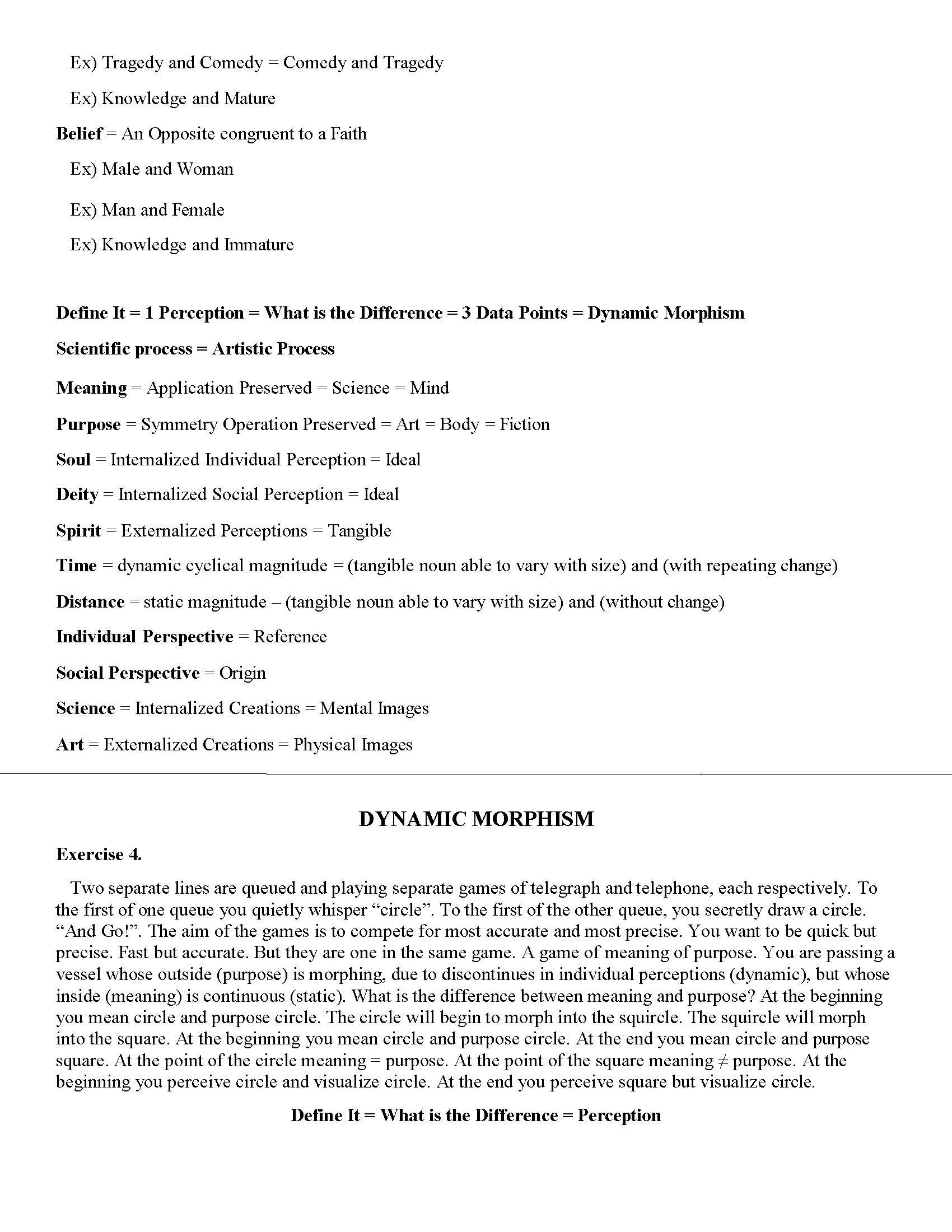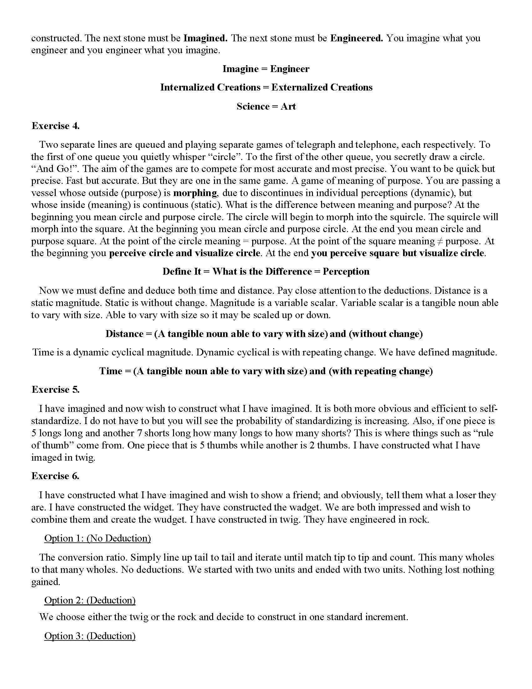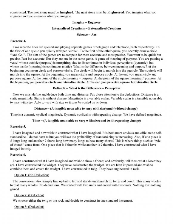 5. Scientific Method = Inverse Artistic Method. Maths and Arts are one and the same just maths internal and arts external. Can't Place maths in you pocket. You are quite ignorant, not stupid but uneducated. Noun = Tangible (person, place, thing) or Ideal (idea) Time and Distance are both Tangible Nouns. Distance is unchanging so it may be scaled up or down (has associated scalar). Define Time. The only difference is one static and other dynamic. Time is not Second just as Square is not Rectangle. How did Time develop? Shadow growth and decay rates. Lambda(wavelength). Look up. Define. Time is dynamic spatial distance. Distance is static spatial distance. How do we convert between us and them? (Aliens, ET, The OtherKind)