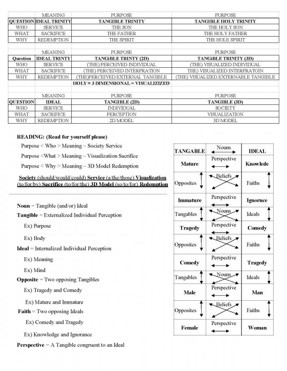 1. Stay Golden Pony Boy I understand the confusion. 1st came philosophy. "Define It for me. Tell me What is the Difference." Define It = What is the Difference = 1 Social Perspective 2nd came Logic. "Define It. Deduce It." 3rd came Mathematics. Mathematics birthed all other arts and sciences. Philosophy is logical thinking. Logical Thinking is Derivation (adding) and Deduction (subtracting). True Philosophy = Logics = Mathematics Maths for the Win!!! Cross and Circle, Trinity Logo, Tenant Table, God (IT), and Energy bounds have all been deduced and pried apart. The are distinct ideas you have confused with one another.