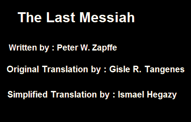 2. Dedication : To the soul of Abdel Rahman Badawi (1917 - 2002) , the late Egyptian philosopher who was a major reason for the interest and reading of many people in the Arab world for Western and Eastern philosophies. Preface : To whom it may concern , I present this simplified English translation of the essay "The Last Messiah" to all the lovers of Philosophy and Anthropology around the world , especially to the speakers of English as a second language. When I was completing this translation , I took into account that I must simplify - as possible - all the words and expressions that some may find ambiguous or might be misunderstood , and I did that - as possible - without making any distortion of the meaning or the context. I do not forget to express my thanks and respect to Professor Gisle R. Tangenes , for his translation of the original essay from the Dano-Norwegian language , without which there would not have been an Arabic translation of the essay (which was Gratefully done by Karim Saad and Ahmed Qayati) , and I would not have been able to make this simplified translation without his original translation. And this essay (published in 1933) written by the Norwegian philosopher Peter W. Zapffe (1899-1990) , is no less wonderful and important than the novel "Hayy ibn Yaqdhan" which was written by the Arab philosopher Ibn Tufayl (1110-1185). And because philosophy and science in general were transferred interchangeably from the ancient Greeks to the Arabs , then from the Arabs to the Europeans in the Middle Ages , and finally from the Europeans in the Renaissance era and the modern era to all peoples of the world ; and since languages are the means of that philosophical and scientific exchange , therefore I urge the speakers of English as a second language - if they have the Time and Ability - to translate this simplified English translation into their own native languages. Ismael Hegazy– (January 2023) ــــــــــــــــــــــــــــــــــ You can download the translation of the essay from the attachment The Last Messiah - Simplified Translation.pdf