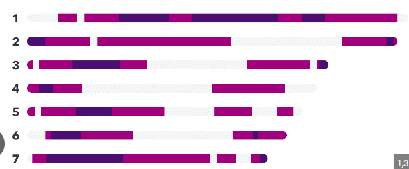 2. So below, for your kind reference, is a bunch of DNA strands My question is, can you point to the dark purple areas and say, with confidence, that 'that portion of DNA strand is the dna that controls skin colour' or that little bit of light purple in the 5th section is the part that controls hair colour etc etc?