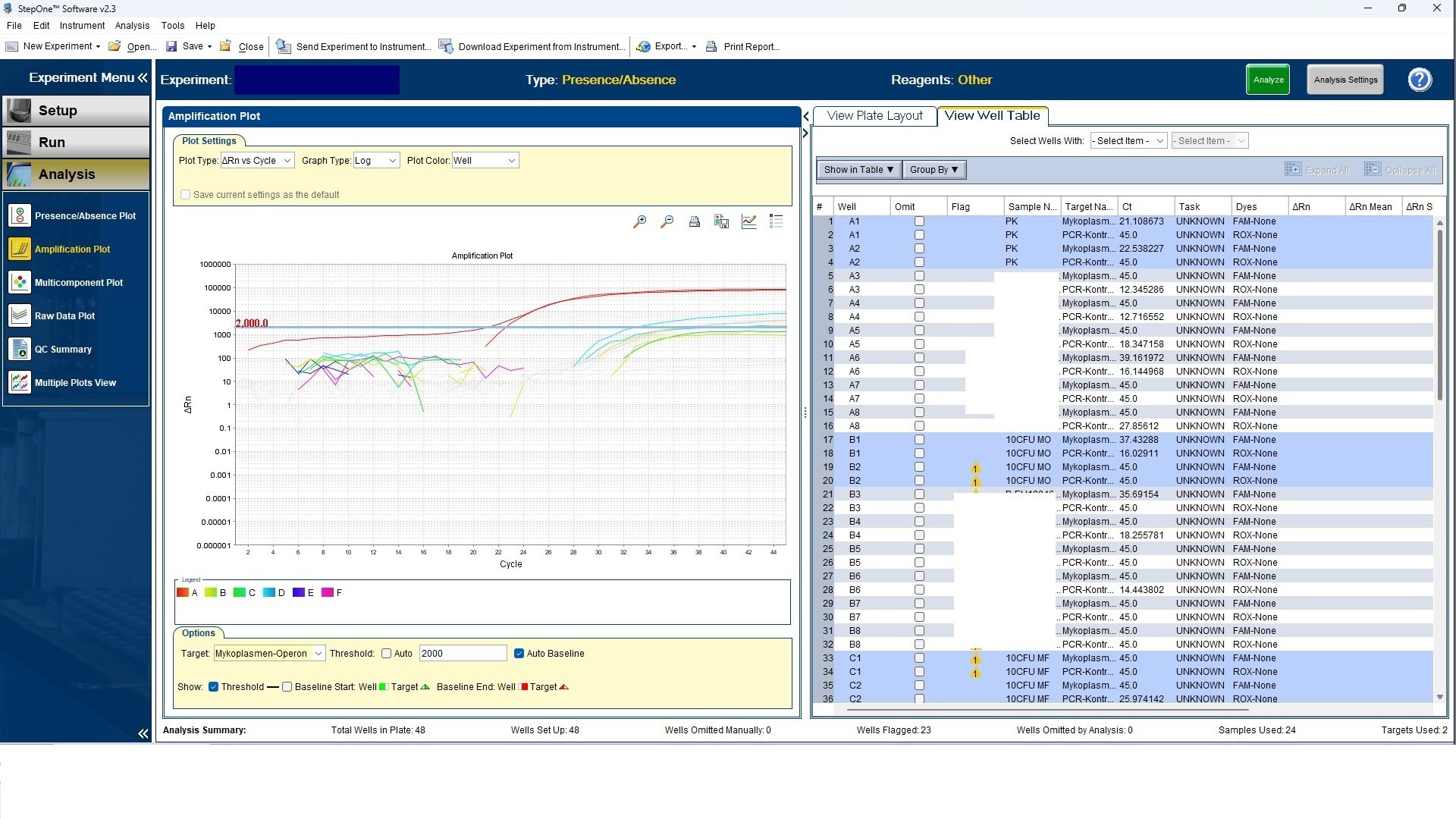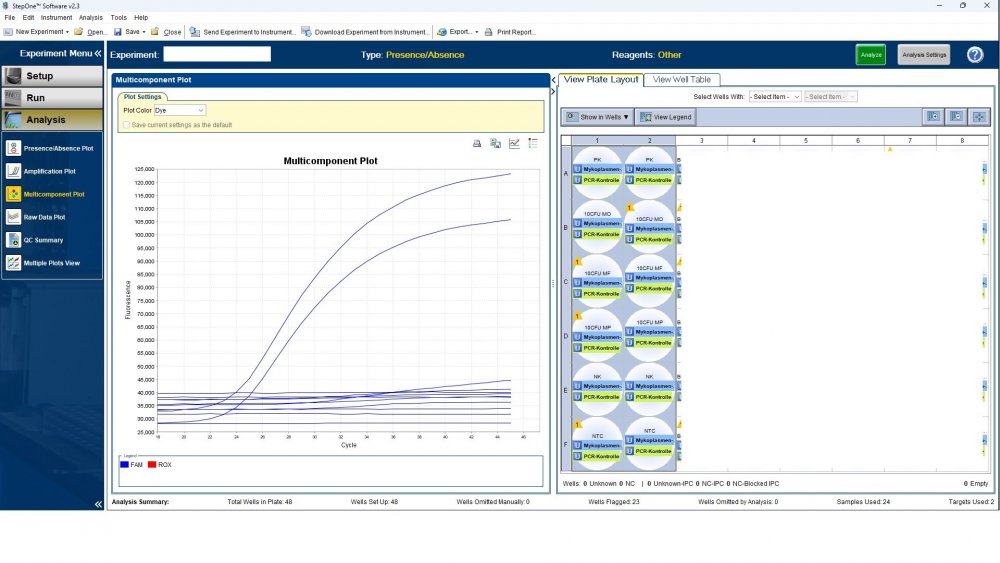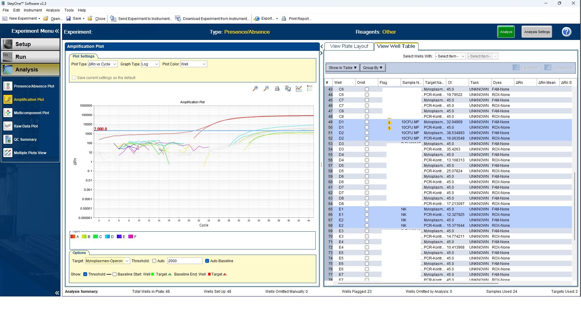 Here is the answers; what you indicate as standard in your list are the extracts from counted cells? Exactly the difference you see is e.g. between B1 and B2, which contains template from the same sample? Yes Is there a trend or is it random? Random As part of your SOP, are you using low-biding filter tips? I uploaded its image. I use Microsart AMP Mycoplasma (Sartorius) to detect the Mycoplasma (FAM, ROX kit) What are you meaning by MM? Attached are pictures of one of the invalid tests.
