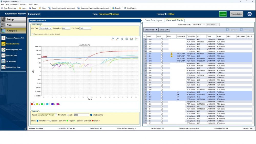 Hi everyone Mycoplasma detection has been a major challenge for me lately. I do cell culture and use qPCR to detect mycoplasma. In addition to controls(+,-) and NTC, I use 3 different strains of mycoplasma as standards (M. orale, M. pneumoniae and M. fermentans). Some Cts relating to standards are extremely high (sometimes 45!) for a few weeks. This is while I count the samples with a flow cytometer before DNA-Extraction and at least 13x10*6 cells are counted in it. The samples and wells in which Ct indicates greater than predicted (I consider ≤35 to be an acceptable Ct and I had before) appear to be entirely random. I have tested different modes, and the results are uninterpretable. We have two PCR devices, and the problem is the same in both. All samples, controls and standards are pipetted into two wells (double determination). Does anyone have any ideas?