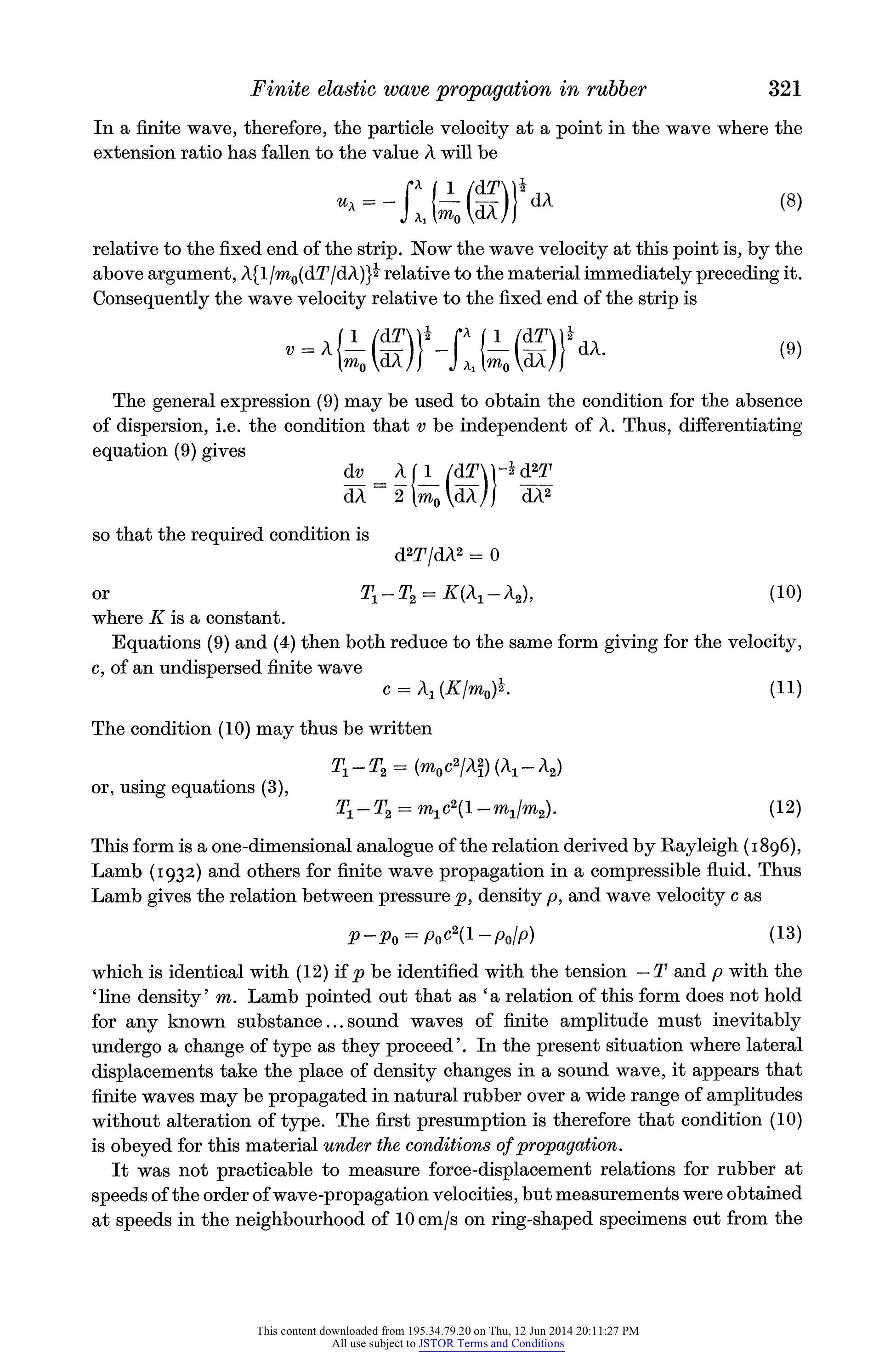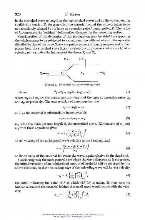 Hello! Please help me understand the scientific article written by P. Mason. I can't figure out what exactly the u_lambda speed means. On what basis did the integral appear in it? I need the retraction rate of the rubber band during the retraction process. Is that her? Is this the speed of the end of the tape retraction in the process? Or does it mean something else? I need to get the rate of retraction of the end, I don't understand if this is it or if I need to express something else. And why does it depend through an integral on the extent to which the wave has passed or what?