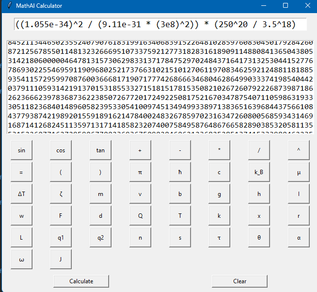 Over the last few months, I’ve developed a symbolic AI system called MathAI — not just a math calculator, but a dynamic reasoning engine designed to simulate how real physical problems behave under mathematical structure. This isn’t a neural network, a typical CAS (Computer Algebra System), or a rigid symbolic simplifier — it’s a hybrid between mathematical theory, physics modeling, and logical verification. (This might sound simple. Just keep reading.) 🔍 What Is It? MathAI takes symbolic math inputs, evaluates them using sympy, and augments that logic with a few very powerful features: 🧱 Grounding Truths MathAI has a core idea: it learns from grounding truths — equations that are known to be dimensionally and symbolically valid. These include classical physics equations (like kinetic energy, work with angle, Coulomb’s law, etc.) and mathematical identities from trigonometry. Once an equation is solved and recognized as consistent (or verified manually), it’s promoted to a “grounding truth,” meaning it can be used to verify future equations by structure or result similarity. 🧪 Partial Truths & Learning When MathAI evaluates an equation that doesn't match a known truth, but still produces a valid result, it stores it as a partial truth. These are reviewed and can be promoted to grounding truths — allowing the system to grow over time. This mimics a human learner testing what "seems right" until enough confidence is built. ⚖️ Dimensional Reasoning (Partial Unit Balance) One of the script’s standout features is that it checks symbolic dimensional consistency. Using a lookup table of physical units, it compares the units involved in each term of an equation. If it detects that values of incompatible dimensions being added or equated, it raises a warning — something even many modern CAS tools don’t attempt symbolically. 🔁 Adaptive Ratio Logic MathAI uses an adaptive ratio system. It doesn’t just take two variables and divide them blindly — instead, it checks their relative magnitude. If the first value is greater, it divides; if not, it multiplies. This feature is useful when modeling real-world systems where relationships change based on scale. 🤔 Why Does This Matter? Traditional symbolic engines process math strictly. MathAI tries to reason about math — not just compute it. It asks: Is this equation built out of truths I already know? Do the units make sense? Is there a deeper pattern here worth remembering? I believe symbolic tools should reflect and adapt — not just return numbers. 🧪 Call for Collaboration If you’re a: Scientist working with symbolic systems Educator building teaching tools for physics or math Researcher modeling physical laws or quantum interactions Developer looking to integrate symbolic AI …then I’d love to connect. Whether you're working on difficult math modeling, scientific calculators, physics simulators, or something completely new — I think this tool could be incredibly useful. Feel free to reach out, ask technical questions, or challenge the engine with hard problems. I'm always improving it and I plan to share it as widely as I can but I have no real means right now. Here's something to peak interest. Take into consideration that my code will only utilize a single core of a processor and works on my Ryzen 7 7800 with sub one second results. (Soon maybe GPUs will have support, but I need data sets with thousands of mathematical problems to run before its even relatively needed.) The picture below has a scrollable 1503 decimal digits. Ran on my Ryzen. If anyone has a math problem I can attempt to solve it! Just input it as comment. I can also add almost every field of math! I can even invent a MathAI that works on specific but large areas of math like a version for medical sciences, or one for astronomy perfectly optimized by only working the required math. It's even made to be able to function areas of math which are "bleeding edge", I plan to add more than a derivative, but a whole system that will allow creation of your own symbols as this is a closed application it will evolve to you! One more post to get 5. So lets say you want to find a specific value for something seemingly infinite, consider what infinite even means, it means "indefinite" or "forever" but that is a rare function in reality, take a wide perspective and consider what positive and negative means. Positives indicate things like, kinetics, volume, mass, or anything physical at that point. SO how can something be infinite or indefinite? My perspective is that it is a simple factor of functions, since we know decay happens then something is removing values, so look into division and diffusion, it produces infinite wells of value depreciation, so then what can be inferred about finding infinite values? IF its positive, its not infinite, if its function is to decay or diffuse then yes it can be indefinite. This might be controversial because of how many things we think are infinite, but I think some values are a simply LONG. Okay I gotta add this. Stars are BIG, imagine how much energy is conducted inside of a star! With all of that energy then light could be a reflection of the complexity in the conduction of plasma. Now calculate that.... Just kidding, as you can imagine a number which has as much complexity that is reflected in a star could be a value so loooong its unrealistically long. Point is, light can be narrowed to specific values based on the complexity of the waveform being produced by the particle shining because that particle has mass and is in combustion which is all align with positive function. At least that's what I believe.