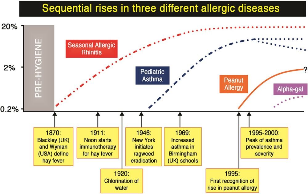 Ran across this on bluesky. Prevalence of allergies is a fairly recent phenomenon, following the pathogen load reduction of improved hygiene and modern medicine. It’s a discussion of how to mitigate the situation. “Evidence suggests a combination of strategies, including natural childbirth, breast feeding, increased social exposure through sport, other outdoor activities, less time spent indoors, diet and appropriate antibiotic use, may help restore the microbiome and perhaps reduce risks of allergic disease. Preventive efforts must focus on early life. The term ‘hygiene hypothesis’ must be abandoned.” https://pmc.ncbi.nlm.nih.gov/articles/PMC4966430/