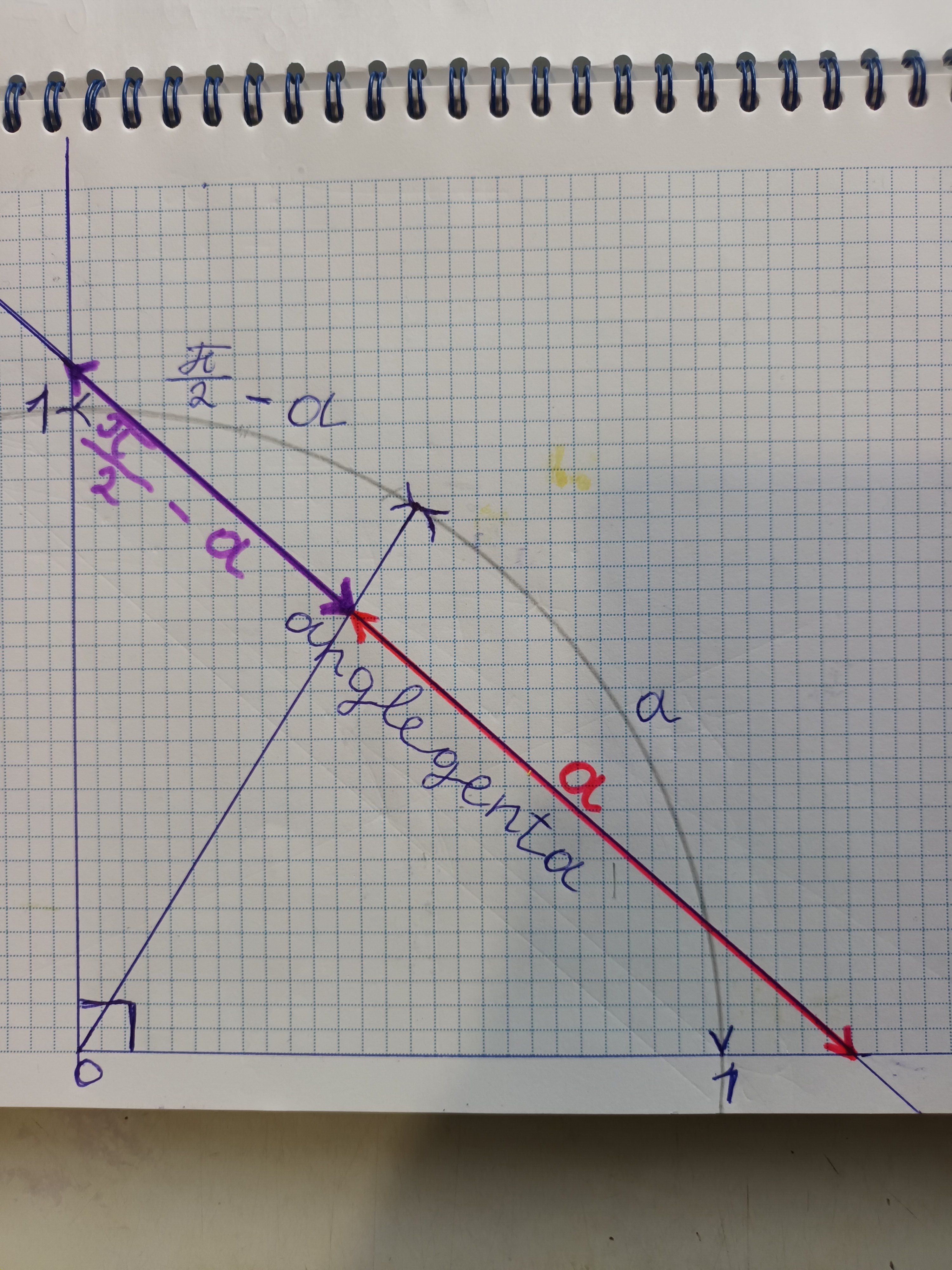 I have mistaken because it correct only when à=Pi/4 . You are correct only in the case too. Because green line is not tangenta to the circle in point [cos(a); sin(a)] . It is tangenta in other point.
