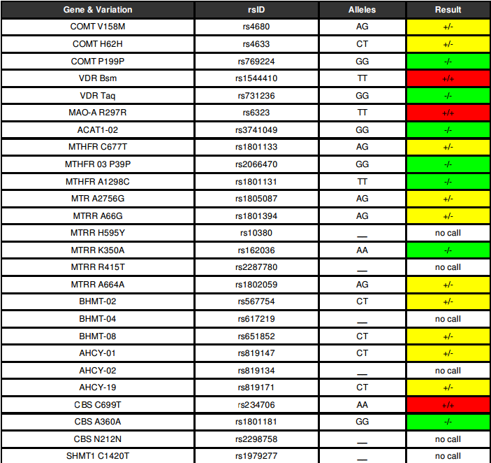 However, I did a 23andme a ~7 months ago to hopefully get some insight as to what is going on. I found out I have quite a bit of mutations but upon research, it seemed to be nothing out of the ordinary. I did however notice that Nutrahacker,promethease,genetic genie, and livewello stated that, perhaps, methylated b vitamins may help (nutrahacker was the opposite 3/4 recommendations said to avoid methylated compounds).