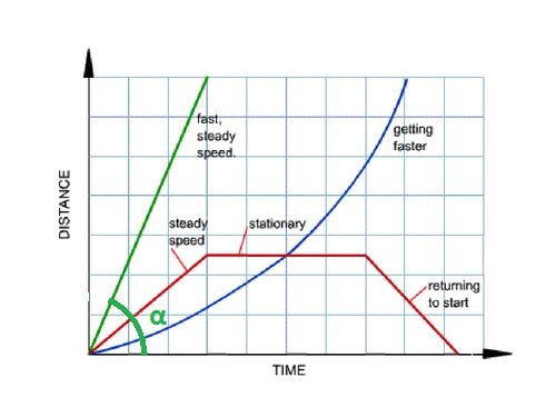 In fact speed is represented by the angle of this line.