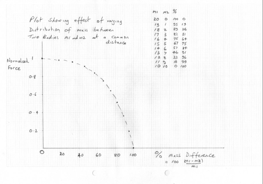 Where I come from is a large mass M of say 12 kilo. A small mass m of 6 kilo. A total of 18 kilos. A mutual attraction factor of 72 according to Sir Isaac's law of mutual gravitation.