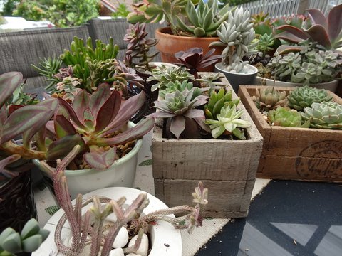 My succulents have been somewhat decimated by persistent mealy bugs, which came to me by way of a clipping from a friend. I have about half of the ones in these pictures: