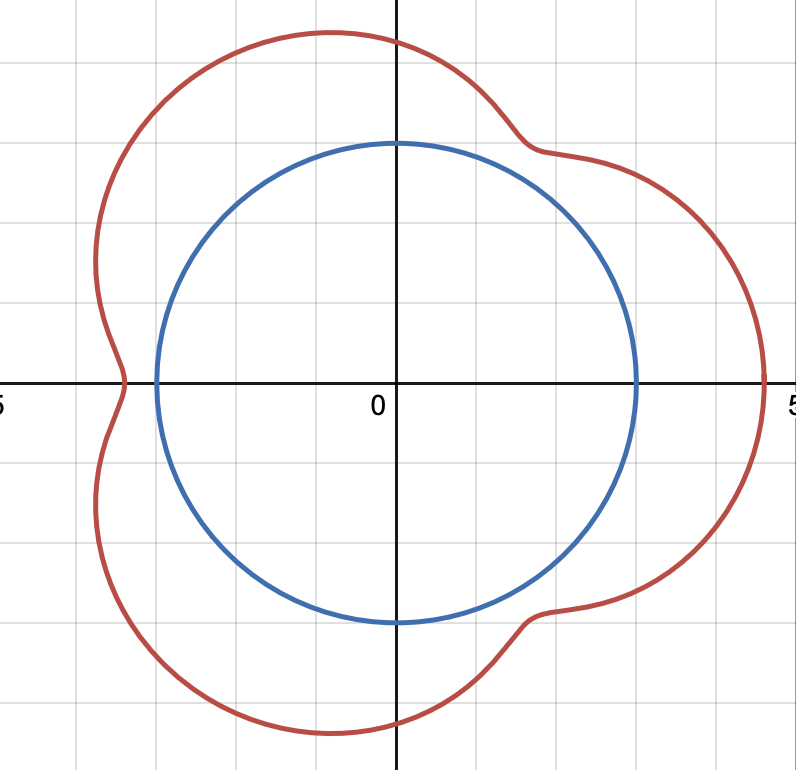 With parameters  d=1, r=3, R=9 I get the triangular shape I was looking for