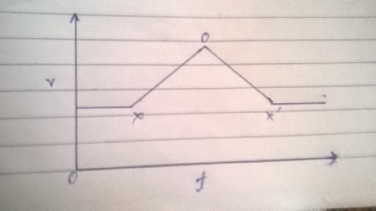 Initially said said that the acceleration was initially positive up to O and then negative afterwards, so I would expect to see your triangle part above and part below the line.