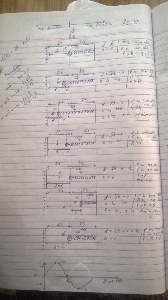 But as the ball shows a harmonic motion, the external electrostatic force acting upon it is also harmonic or periodic in nature. Considering that F shows oscillations, the equation becomes
