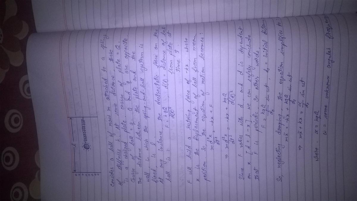 [math] m\frac{d^2x}{dt^2}=-kx+F [/math] , F is the electrostatic force and m is the mass of the ball. x is the displacement of the ball about its mean position.