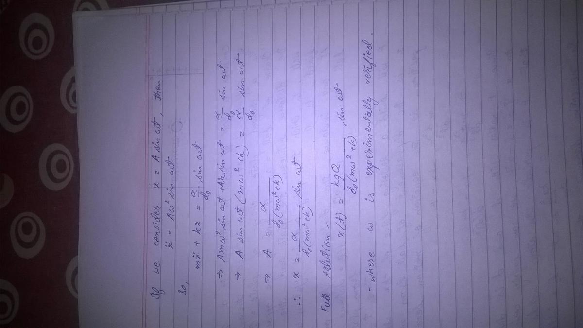 Solving this yields [math]x(t)= \frac{k_e qQ}{d_0^2 (m\omega^2+k)}sin \omega t [/math]