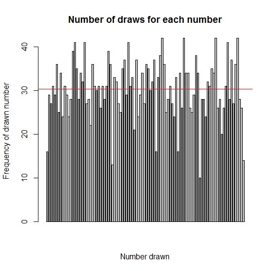 To quantify this a little i performed a chi-square goodness-to-fit test under the null hypothesis that each number is selected with equal probability.