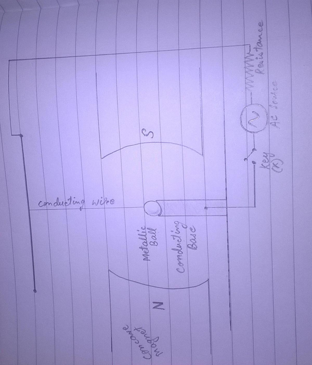 My question is what will happen to the system. Will the ball show oscillatory motion with the change in the direction of current? Or will it collapse due to high impedance? Also, please write the equation of motion for the above system.