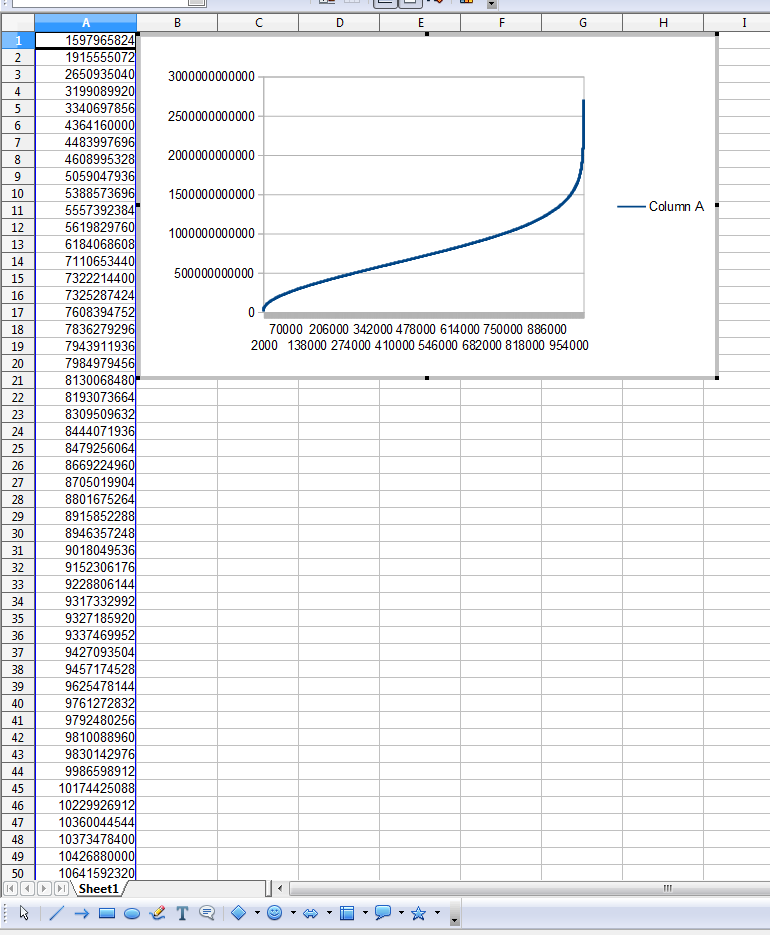 It generated series of rows (,exe >data,csv), that can be loaded from OpenOffice, and sorted, and show graph (max_value=1000):