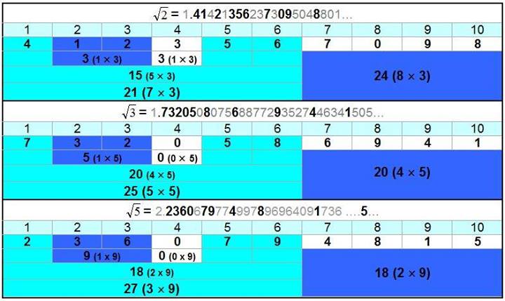 Number Pi and the Golden Section as well as the inverse of these numbers are made up of a series of apparently random decimal places. This paper is on the occurrence order of the 10 digits of decimal system in these fundamental mathematic numbers. It is in fact that the ten digits of decimal system does not appear randomly in the sequence of Pi and in Golden Section. Also, same phenomena operate in many other constants of which the square roots of numbers 2, 3 and 5, the first three prime numbers.
