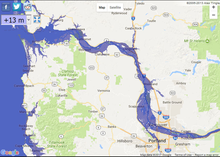 By using the second link's prediction of a ~15 meter rise by 2500, this is what my neck of the woods would look like: