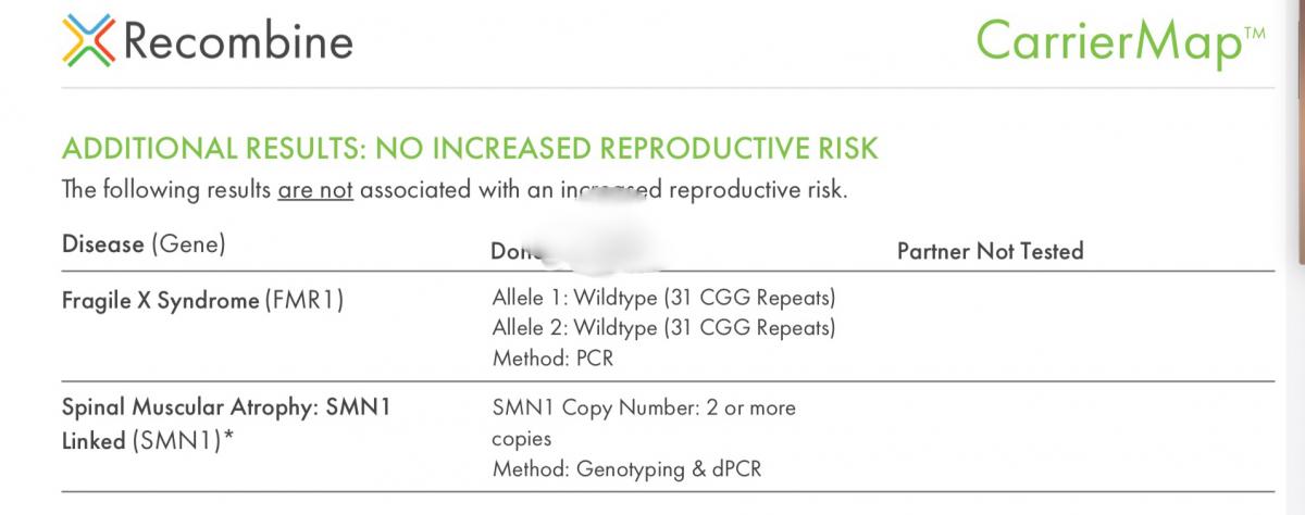 Hi Genetics gurus! Need your help. We are planning on using an egg donor and she is not tested to be a carrier for any genetic conditions tested as shown on the second pic. However, on first pic there is another table that confuses me. What does it mean? Shall I be worried about it? Thank you!