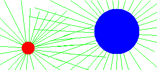 say mass doesn't directly bend spacetime. say the graviton is what actually bends spacetime. massive particles just emit gravitons. the farther the gravitons get from the source, the more spread out they are, therefore the force is weaker (which makes sense, with the inverse-square law). gravitons don't need to be absorbed, they just are emmitted. i am guessing the mass would determine the graviton emmission rate. i wouldn't even know how to start making equations to compare to gr. i don't even know how to do tensor calculus, so i couldn't compare with gr if i had the equations. there is probably some qm stuff that i need to factor in. this is just a base idea for now. in the diagram, there are two objects with different masses. the green lines are graviton paths.