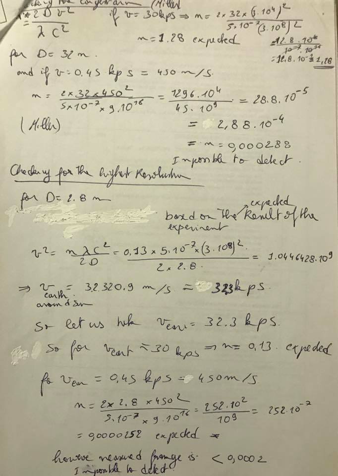 I verified the fringe dimension for the earth surface velocity and it gave me fringe dimensions  that are not detectable even with the largest 28 m MM apparatus diameter size