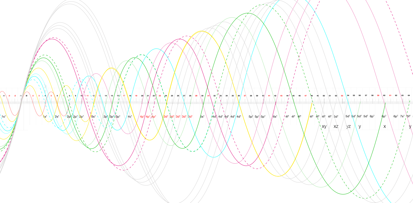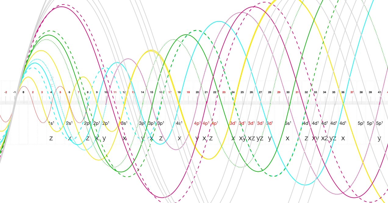 If you now add in the axis for each wave i.e. a wave that starts at 6 on one axis would need to cross the number line and be on the correct axis for later electron shells to this formation: