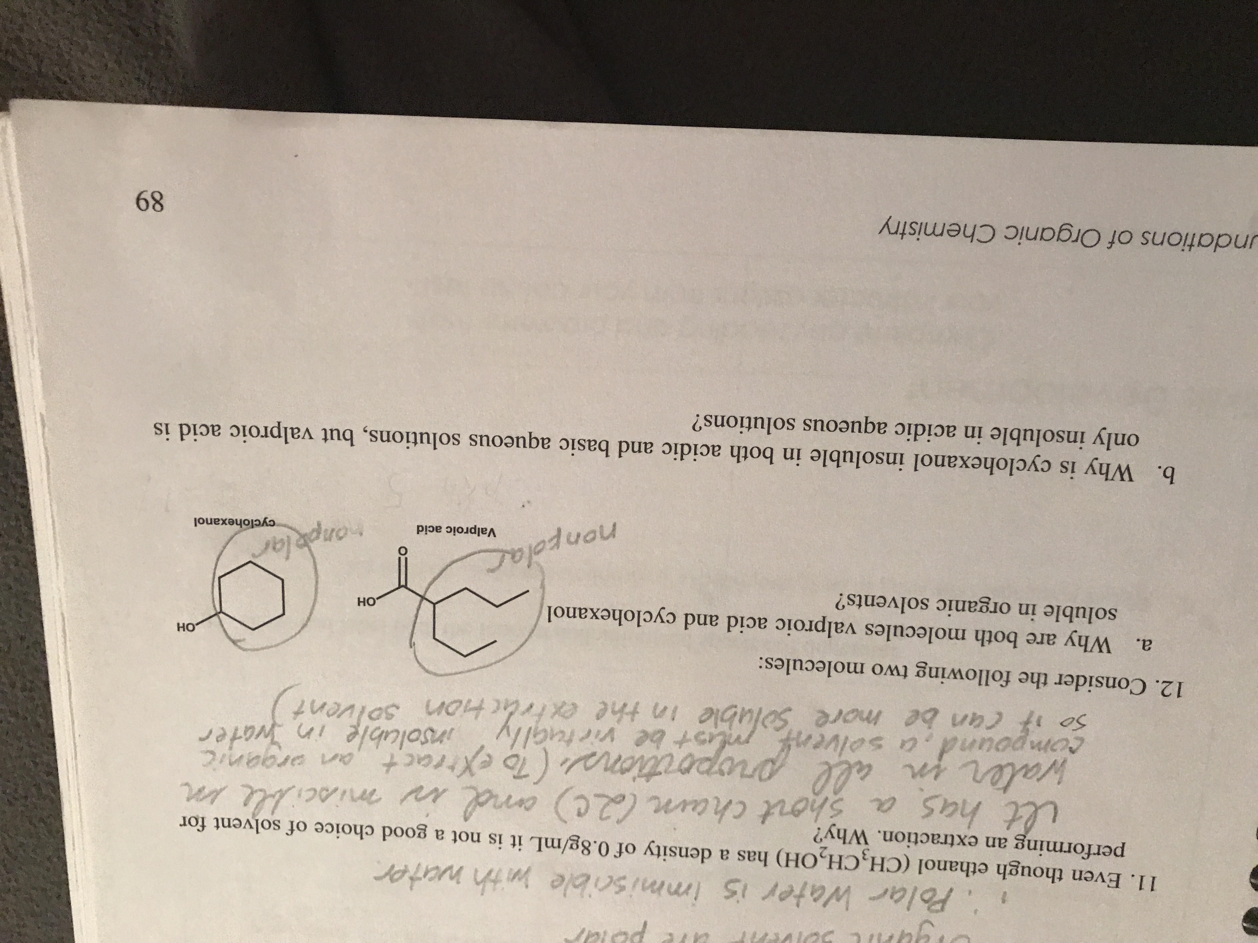 First, Hello again. Okay, is it that by using Henderson-Hasselbach, if you put cyclohexanol(pKa is 17) in a base, ph 10, for example, 10^ph-pka= 10^10-17 is 10^-7 is less than 1 and an acid solution,ph=3, 10^3-17=10^-14 is less than 1. Meaning, the acid is predominant or protonated species and does not ionize in acid or a base solution, therefore, no reaction?