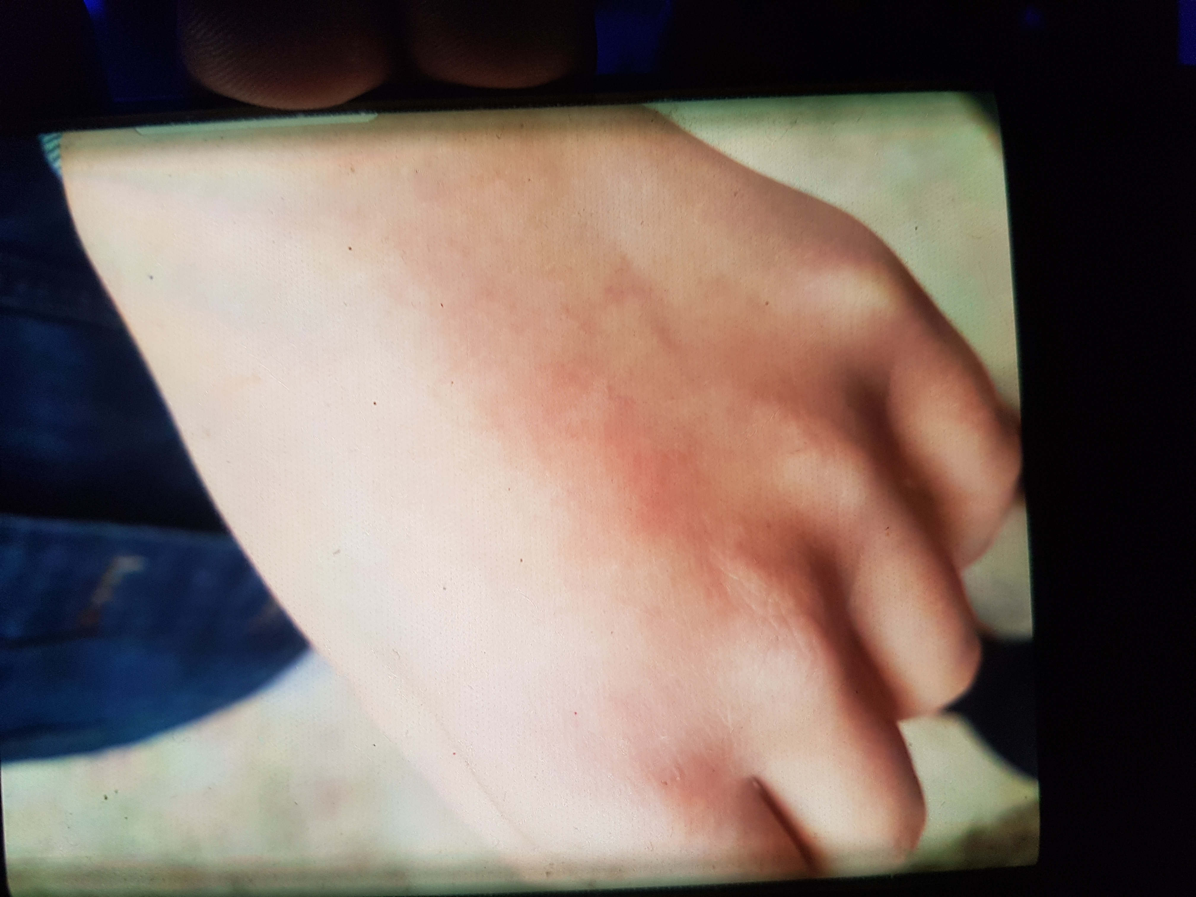 she said she washed off straight away as thats what she was told before lesson started then teacher dried with paper towel