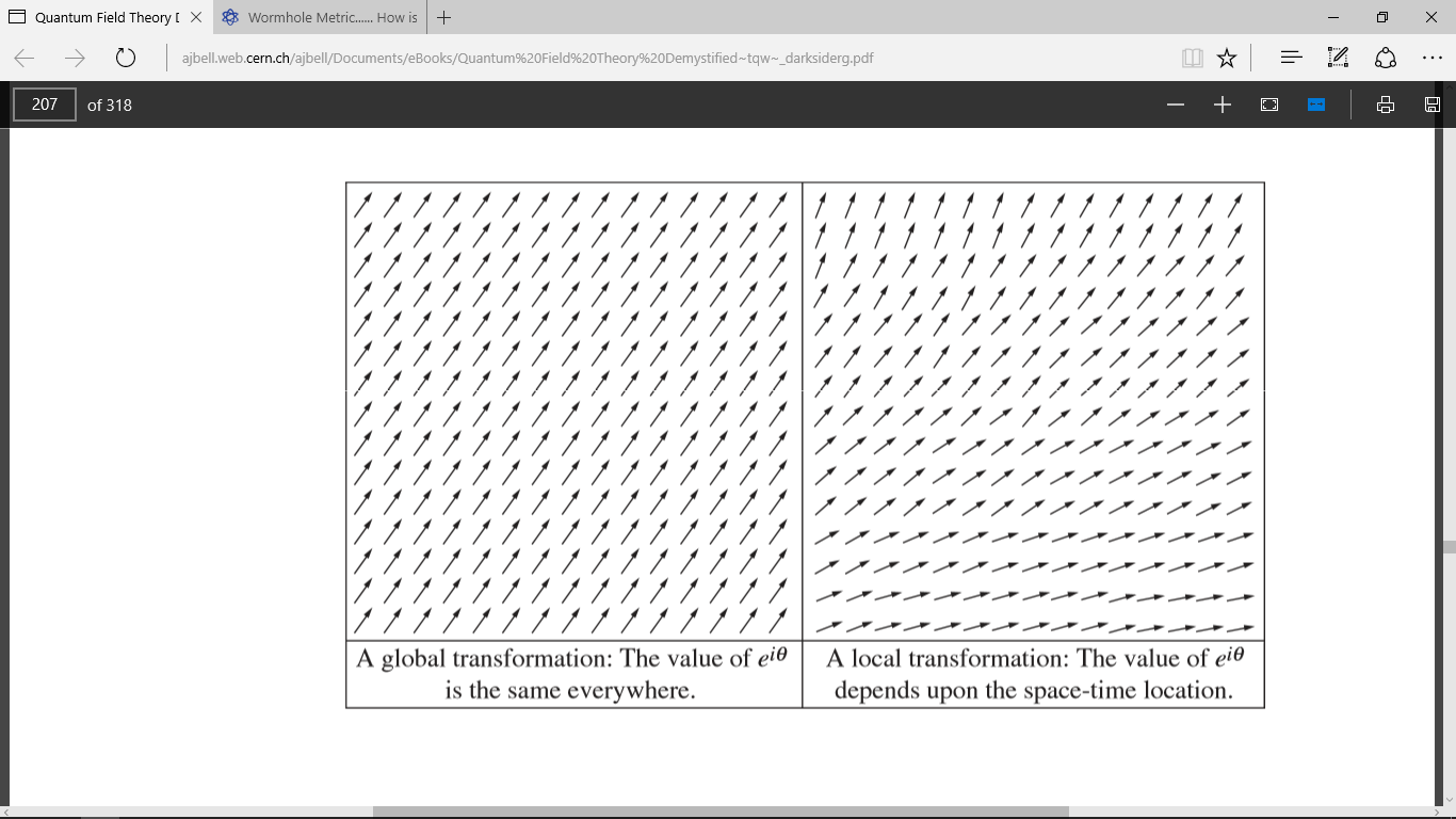 here is an example the image on the left is a global vector field, the right is a local vector field. You want a set of equations to get from image left to image right. This is just U(1)