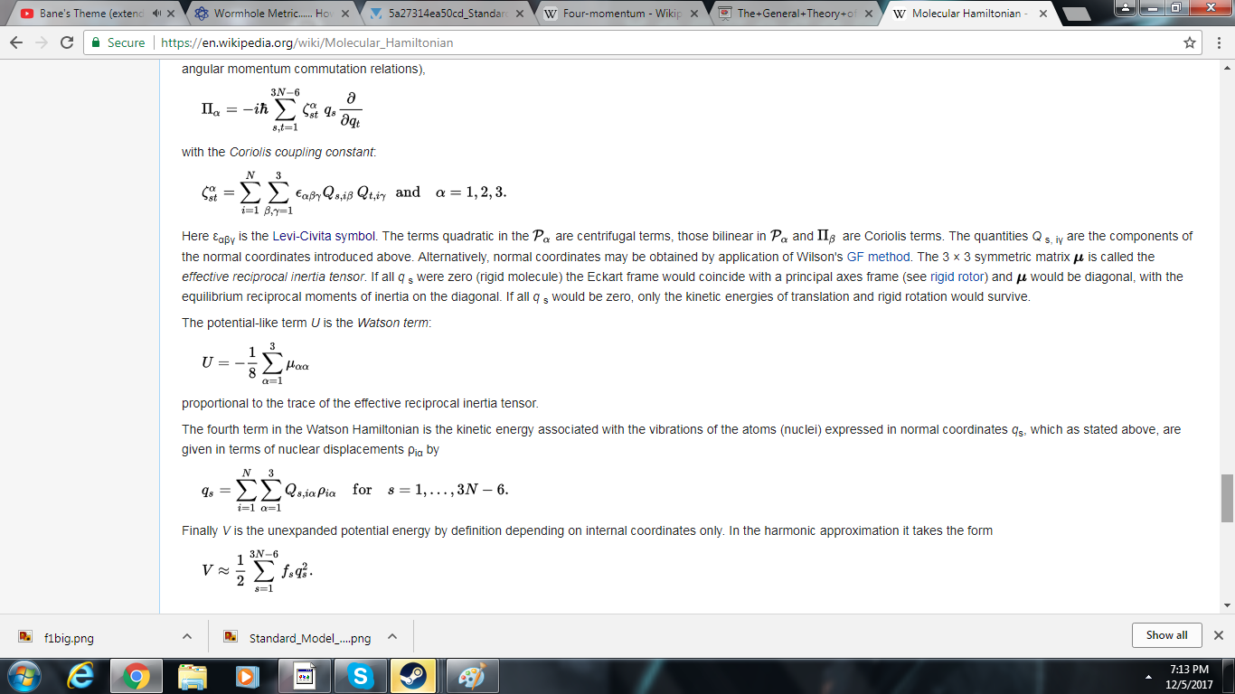Which Coriolis coupling is not general enough only diatomic molecules, but the constant version is and also I think I know why Quantum entanglement happens now same reason as why molecules bind, synced rotation/Angular velocity and vibration states equal opposite perfectly.