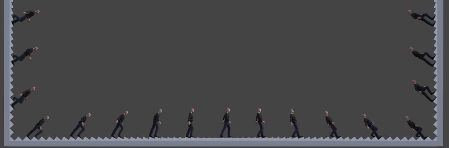 Wouldn't stepping onto a wall be supported as much as the "floor" he started from? I'm not sure why there would be an uphill/downhill difference on the inside of the spinning cube.
