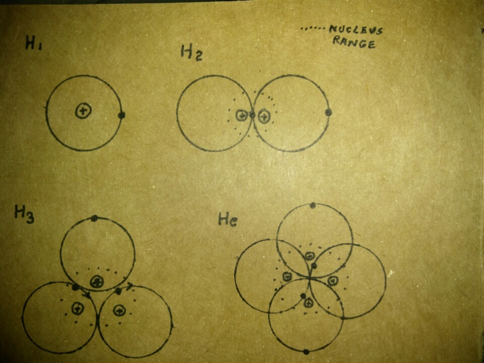 I have always had a problem with the role of the neutron in the atom, I was trying to model an atom where electron proton pairs periodically merged forming neutrons and giving up their kinetic energy to a neutron which then decayed into a fresh proton electron pair. Failure! However the simulation I had created used only protons and electrons which hypothetically would combine and decay. I would try placing these particles in my direct3d "space" at guesstimated positions and velocities then I would allow it to run... for hours or days. One day I was observing a model that had been running for days and had not dissipated(as so many had) and I realized that although the model had some stability, none of the pairs were combining. It was a stable model of a helium atom. I backtracked and found that I was able to produce stable forms of hydrogen, deuterium and tritium!