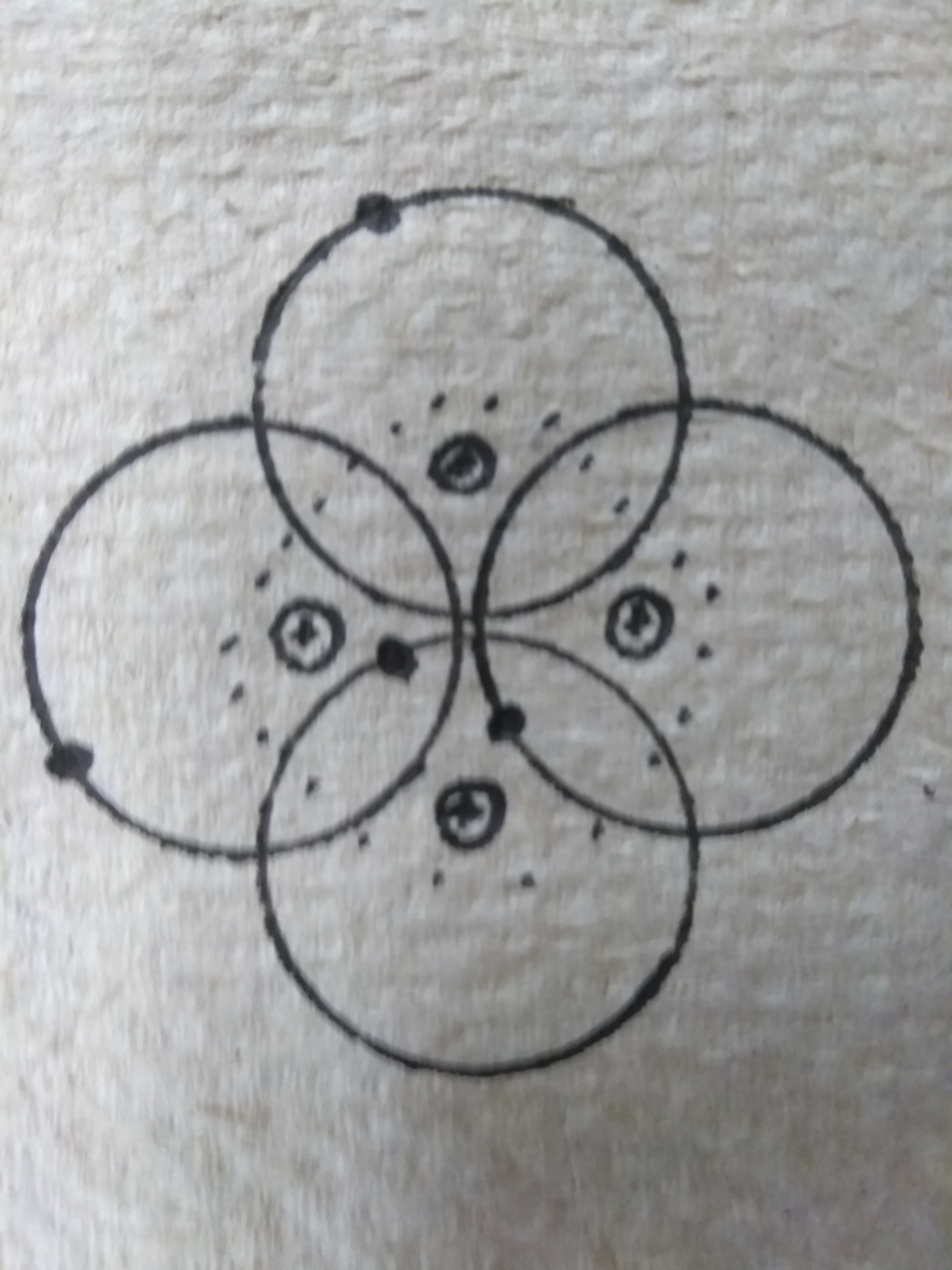 Why are your small circles with the positive signs in the middle not at the centres of the large circles which appear to show orbiting blobs?