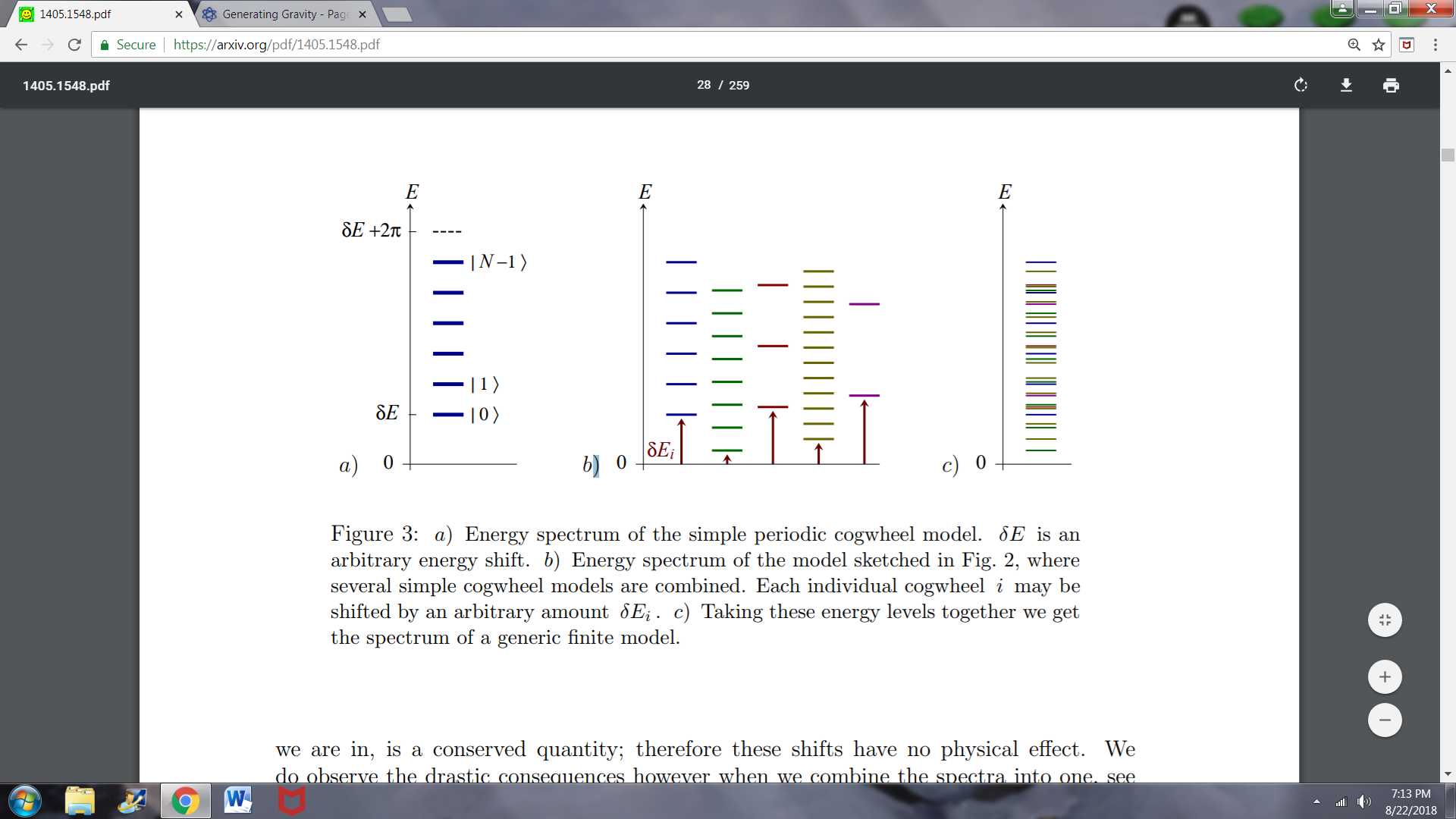 I thought about it, and if you have two tubes separated by 90 degrees, with one drive in one, the other drive 90 degrees.  You could have a variable drive connecting both inside that "groin" between the two tubes.  You could have the variable drive controller connected to a single hole that can open and close that separates between the two chambers to allow pressure from one to go to the other.  So all you would see in time is -hole open for 20 microseconds, hole closed for 250 microseconds, hole open for 60 microseconds, etc.  It would not be a one dimensional cellular automata (because only one on off cell).  The picture of the I call it half-dimensional cellular automata would be (c) in the picture below (the spacing in (c) is the spacing of the sequence in time of the "opening of the hole that separates the two tubes", ie the hole would be mostly closed with intermittent (instantaneous opening then immediate closing, so strike the 20, 250, 60 sequence of alternating on,off, you only care about the times of the ---instanatenous opening and then immediate closing---.  So you can see it's a sequence in time of a dirac delta function (instantaneous at instantaneous times in the infinite time sequence) of "immediate opening and closing of the hole" at sporadic times and different spacing.   I found the picture from Hooft's paper titled "The Cellular Automaton Interpretation of Quantum Mechanics" ie think about the energy levels you'd see, they would be spaced apparantly randomly as in the third picture on opening (and then immediate closing) small hole connecting two tubes at 90 degrees with their own individual drive (but with a variable drive joint connecting them).  The variable drive controller might be (ie how you control the variable drive that ultimately controls both or maybe the variable drive design) based on an analysis of what type of waves are entering the two tubes.  But the picture in (c) is an energy spectrum from two or more distinct cogwheel models, whereas having the variable drive (which is continuous) would have an infinite addition of distinct cogwheel models, which makes this design perhaps even more powerful than a quantum computer (or perhaps it is a quantum cellular automata but with an infinite sum of the individual cogwheel making up the resultant zeeman atom spectrum seen in (c) but so complicated that it defies analysis of what constitutes the individual member cogwheels that make up the sum).  But anyway, it would probably make a much more complicated smoke picture if you do encase it in a dome with smoke.