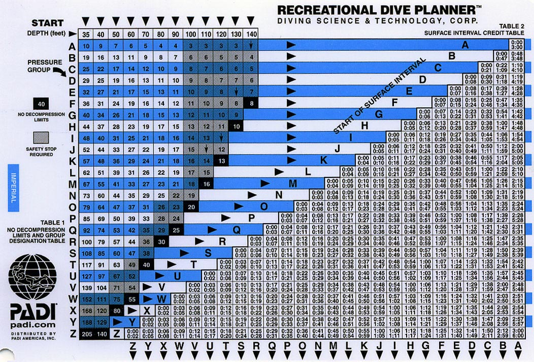 Please be aware the the Navy diver tables have a significantly smaller margin of safety than civilian sport tables.