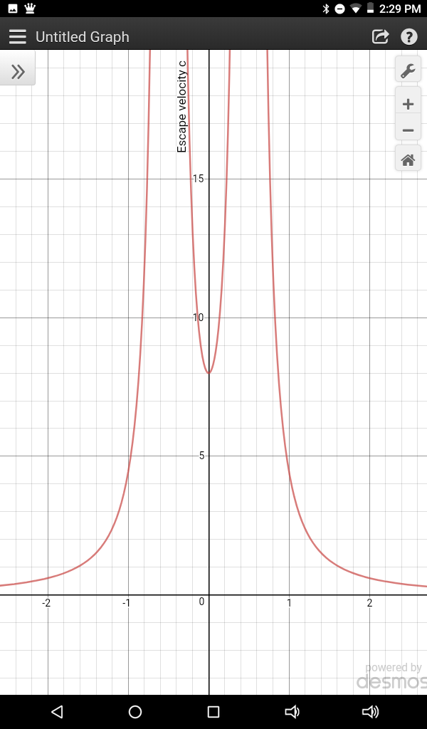 I have found that a more useful way to describe the proto-particle is by mapping the escape velocity with units of "c", I still don't have a reference frame for x, however as I continue my discussion you will see that is not important at this time.