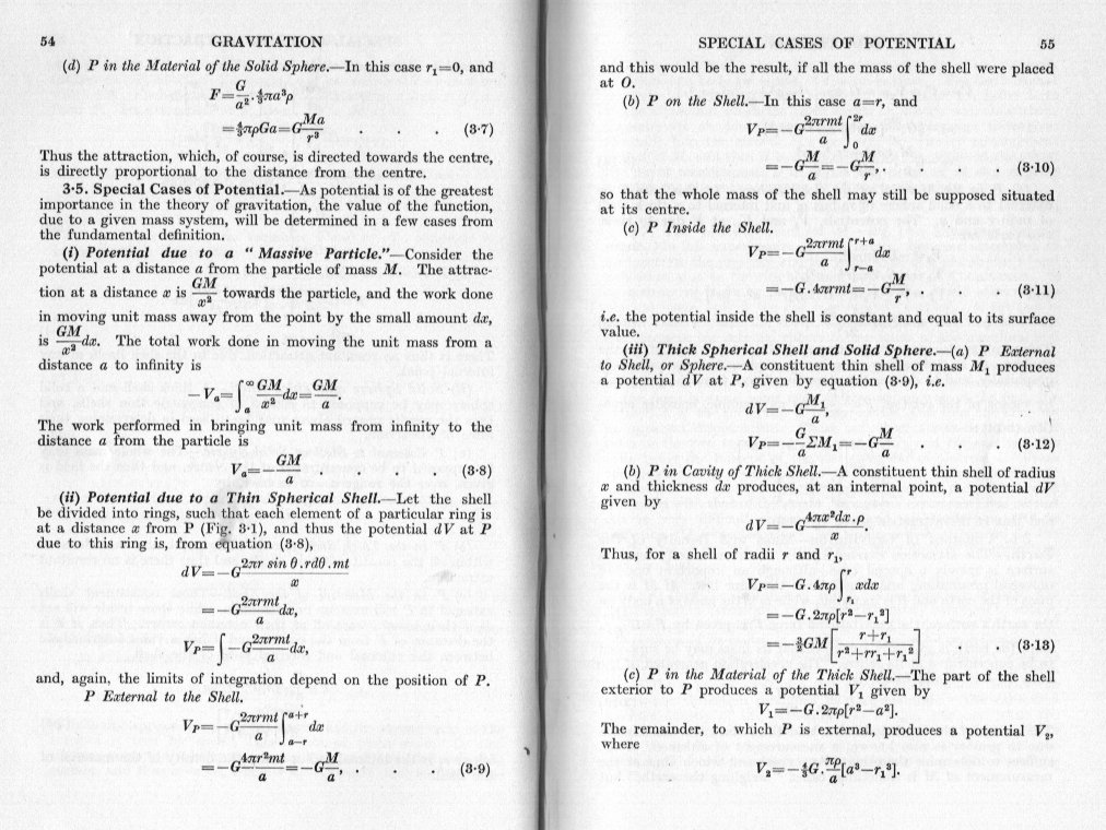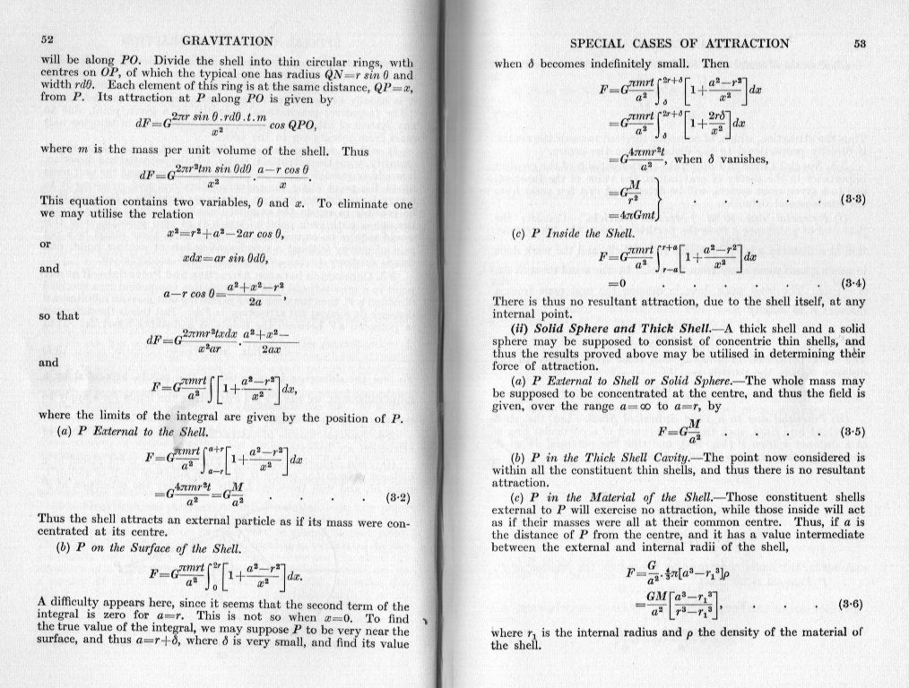 Regarding gravitation, Newton left a law of force and two theorems, called shell theorems. The law of force does not need comment. Let's go to the shell theorems.