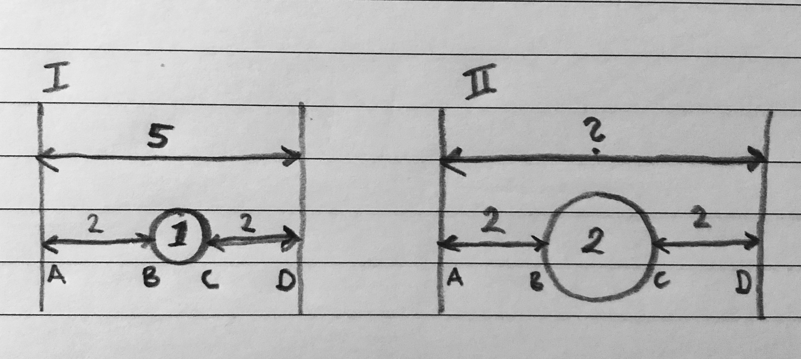 Case II: The universe has expanded to 2 Ly pushing the solid AB and CD away. How long is line AD according to your model?
