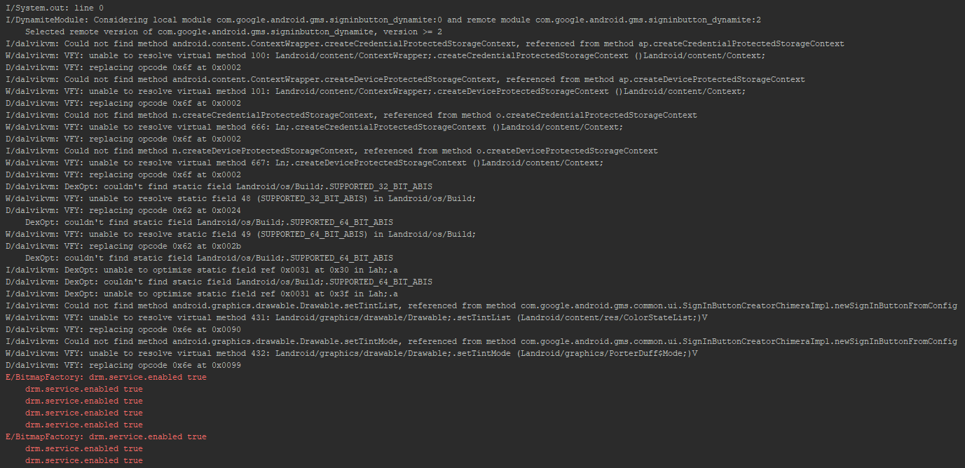Does anybody know how to get rid of the message properly? I was looking online but I couldn't find many references about that specific error I did see there is a drm library https://developer.android.com/reference/android/drm/package-summary so maybe enabling that would work. All the bitmaps used in my app were drawn by me.