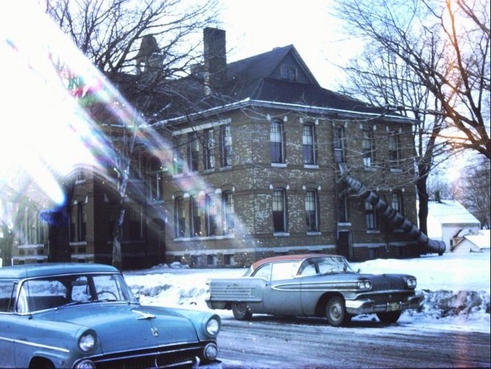 Michigan.  All the fire escapes were switched out to the tube types in all the schools in my home town of Ludington, MI.  They all stopped working shortly after they were installed.  At first we shot through them at a dangerous speed...a teacher would stand about eight feet away from the opening and grab the kids to keep them from falling.  They got slower and slower until the kids had to "scoot" down them using their feet to descend.  You can see the tube in the photo I have attached.  That is a plicture of my grade school in the fifties, "Pere Marquette School", in Ludington, Mi.